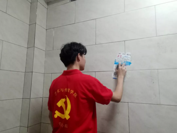 为营造整洁、优美的宿舍环境,艺术与传媒学院党建小组依据“五个一”主题,联合艺传学院学生会各部门派出两个新干事,发起美我校园,你我同行的主题活动。于2019年11月7日下午组织部门新干事到新2、新3宿舍清理小广告。