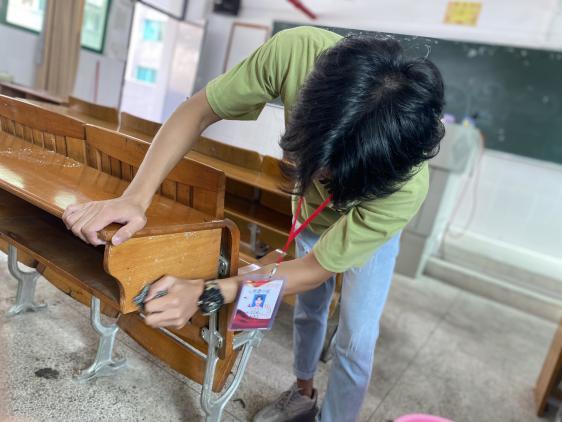 在这样的洗刷下,课桌上顽固的广告渐渐放弃“抵抗”,脱落下来。虽然清洁教室小广告的任务对于大家来说并不困难,但每位同学都认真负责,细心的打扫着每个角落。