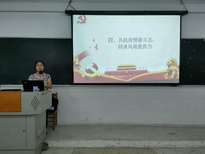 2020年10月10日中午12点,艺术与传媒学院第二党支部书记胡彩霞老师在图书馆403进行了“2020—2021年第一学期思政第一课”的讲授,参加此次会议的主要是19动漫专业的学生。