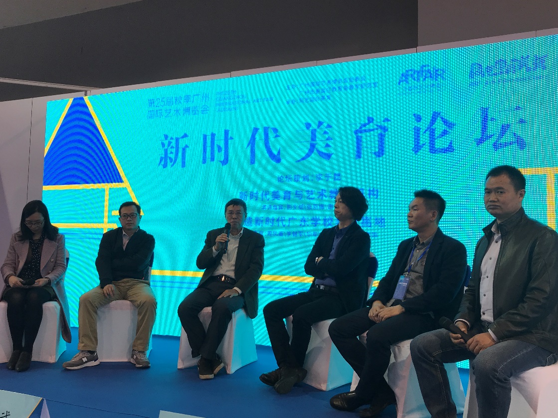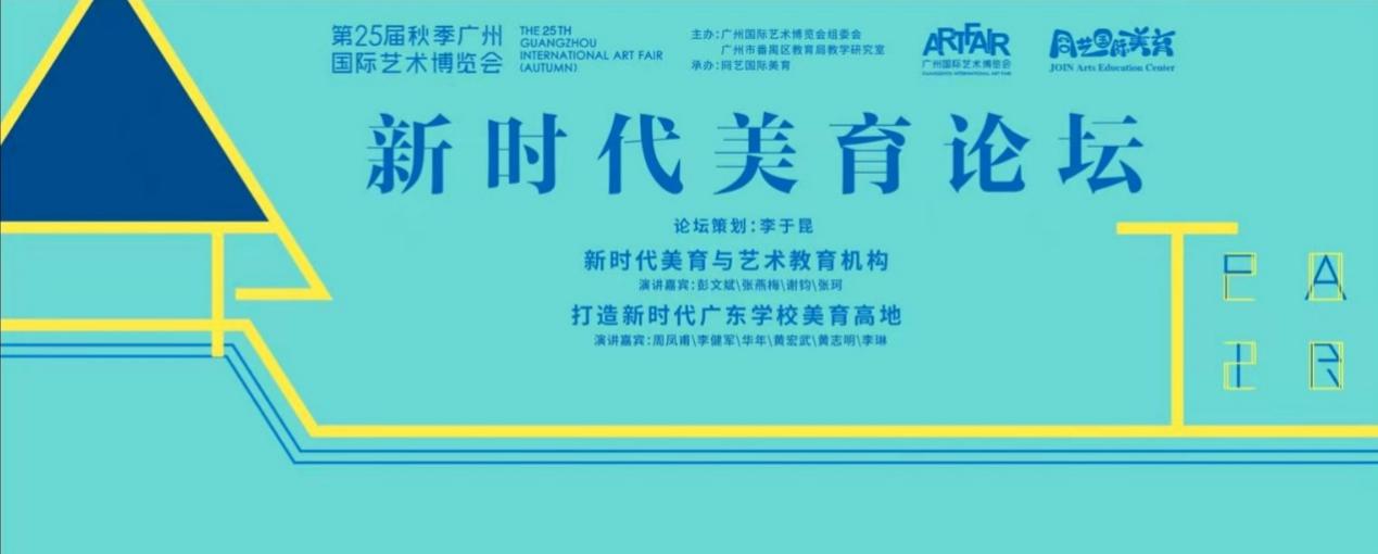 由广州国际艺术博览会组委会、广州市番禺区教育局教学研究室主办,冏艺国际美育承办的“新时代美育论坛”于2020年12月5日上午在广州南丰国际会展中心主展馆举行。论坛是第25届秋季广州国际艺术博览会的同步活动。