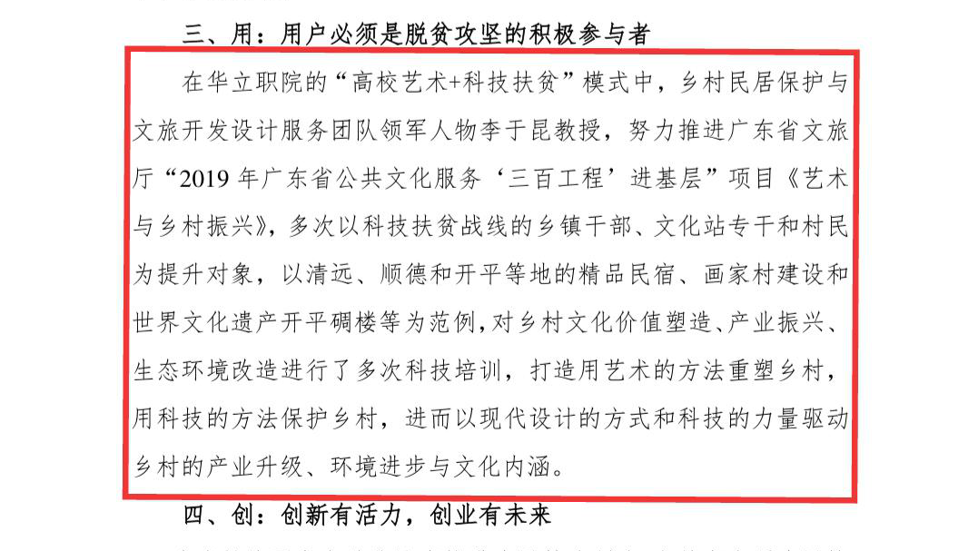 我院“乡村民居保护与文旅开发设计”科研服务创新团队获得省教育厅肯定,《广东省高校科研工作简报》(2020年第15期)重点报道了该团队完成“广东省文旅厅2019公共文化服务‘三百工程’进基层”文化服务项目情况。