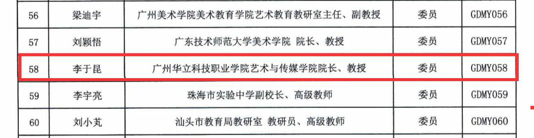 4月24日,广东省教育厅发文“关于成立全省学校美育工作指导委员会的通知”,我院院长李于昆教授当选美育指委会专家委员并任公共艺术教育常务委员。名单经过全省各院校推荐、初审、复审和公示等程序确定,指委会的主要工作职责是担任全省各级各类学校美育教学活动的咨询和指导工作,研究提出学校美育改革和发展的意见和建议,组织开展国内外学术交流活动,并承担省教育厅交办的专题任务等。