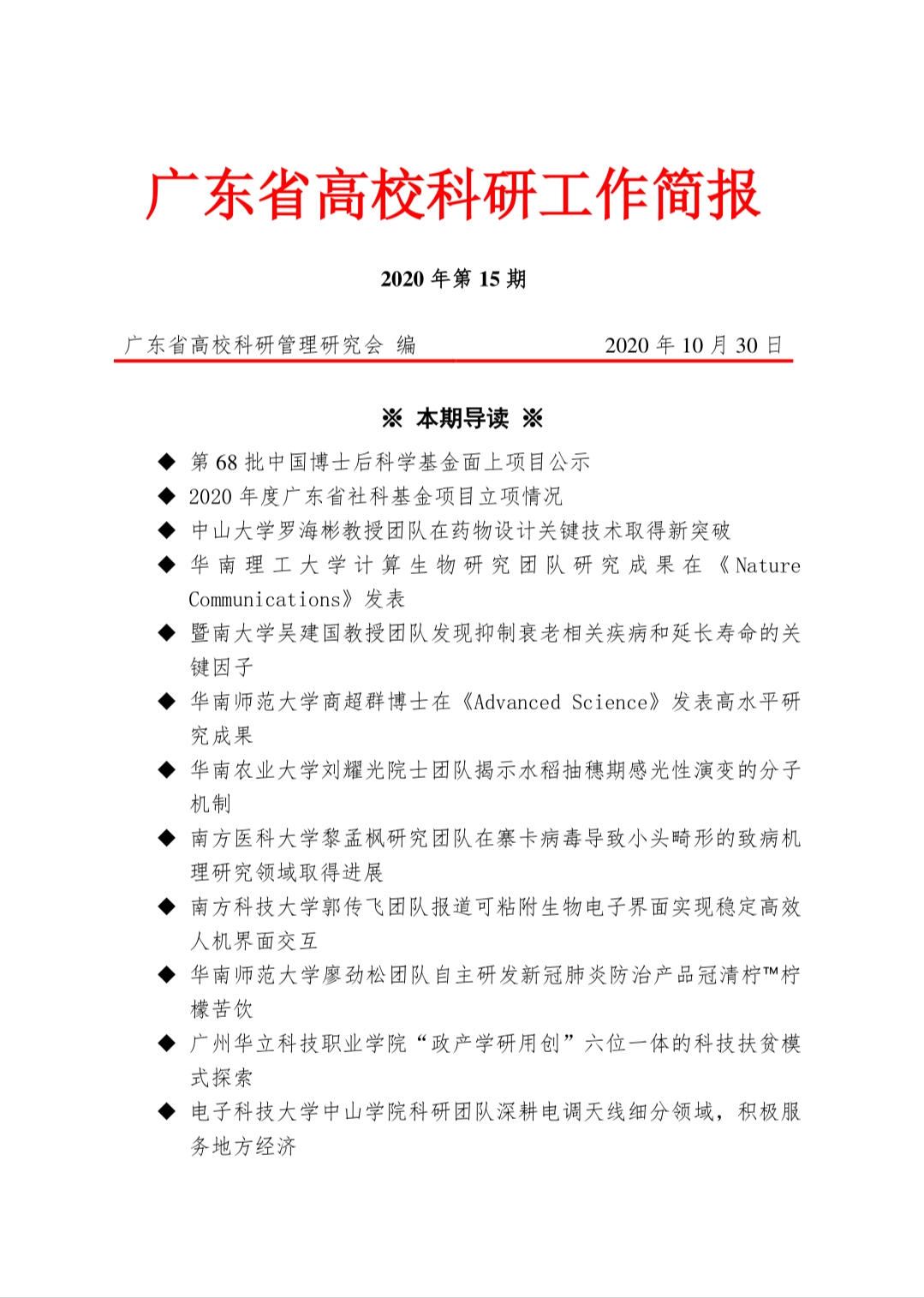 《广东省高校科研工作简报》(2020年第15期)重点报道“乡村民居保护与文旅开发设计”团队创新成果