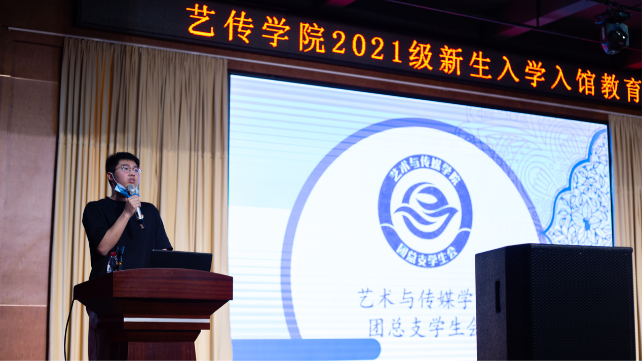 2021年9月23日上午,艺术与传媒学院在图书馆8楼礼堂举行新学期新生入馆入学教育。艺传学院党总支负责人、副院长孟允煌,学管主任宋依谜,团总支书记梁安达以及21级辅导员、全体新生等参加了这次活动。