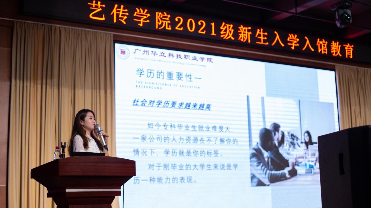 2021年9月23日,艺术与传媒学院在图书馆8楼礼堂召开新学期新生入学教育。出席此次会议的成员有艺术与传媒学院院长孟允煌院长,艺术与传媒学院学管主任宋依谜主任,艺术与传媒学院团总支书记梁安达老师,艺术与传媒学院辅导员刘嘉怡老师,图书馆老师密凤琴老师,专升本老师曾燕燕老师,艺术与传媒学院实习辅导员龙浩戬老师、艺术与传媒学院实习辅导员柯瀚文老师、艺术与传媒学院实习辅导员梁宝怡老师,以及艺术与传媒学院21级全体新生。