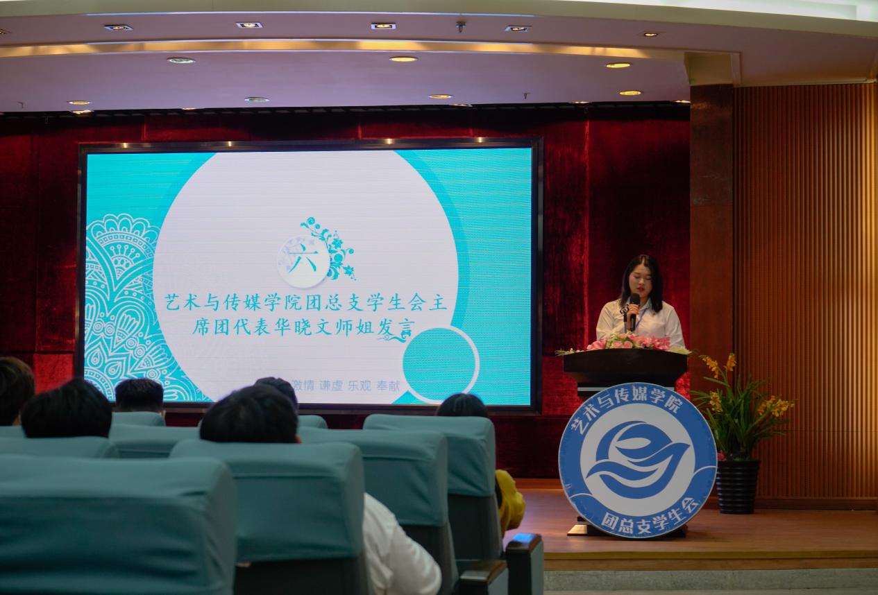 艺术与传媒学院团总支学生会主席团代表华晓文师姐发言