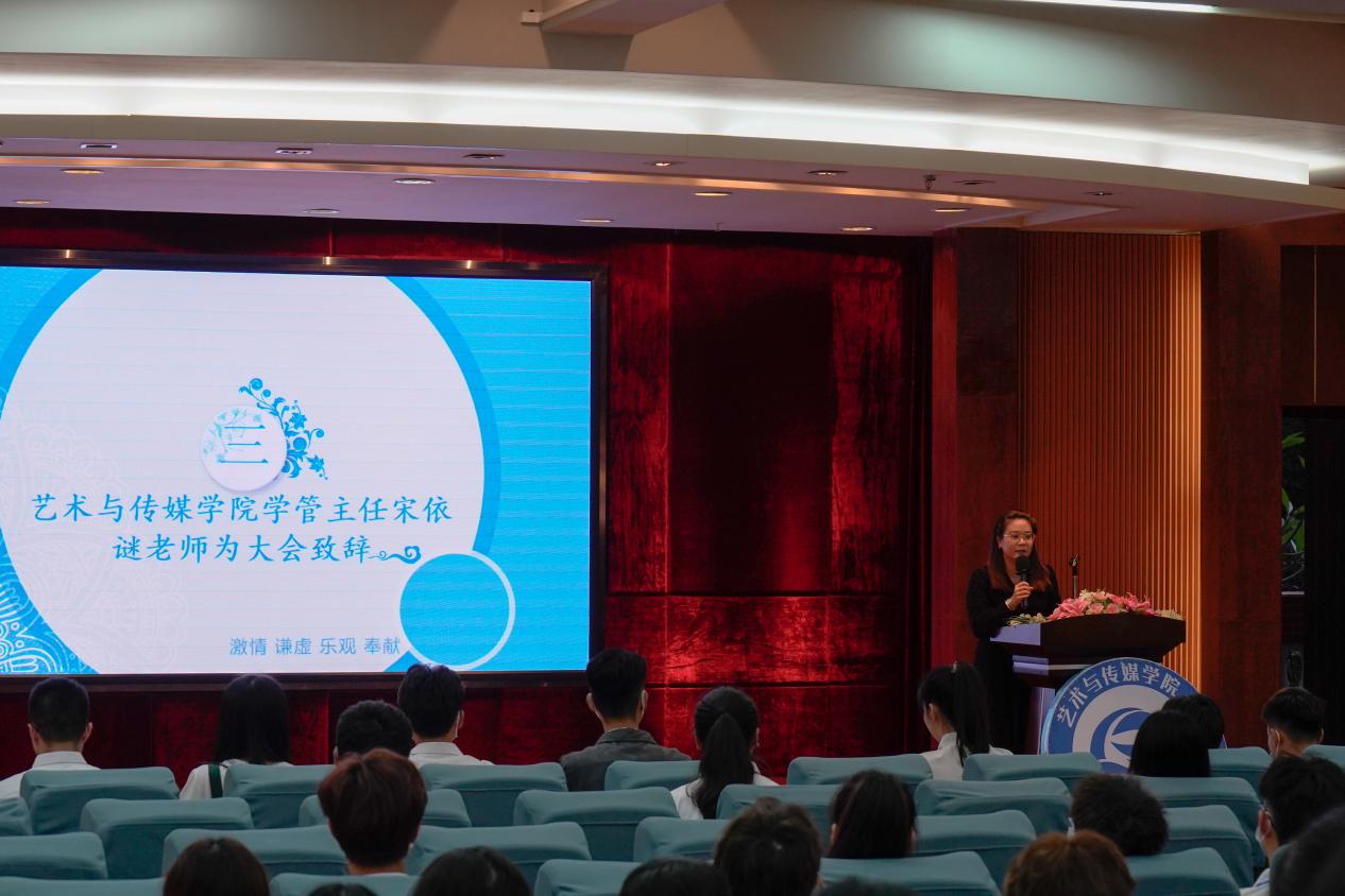 最后他表示希望同学们秉承信念,秉承自身要为艺传的明天添砖加瓦的决心,用满怀满腔的热情,为艺术与传媒学院做出自己的贡献。