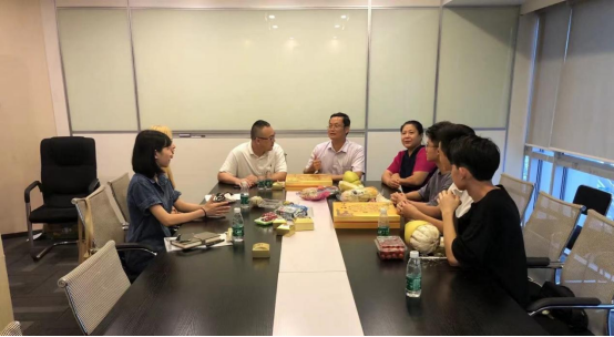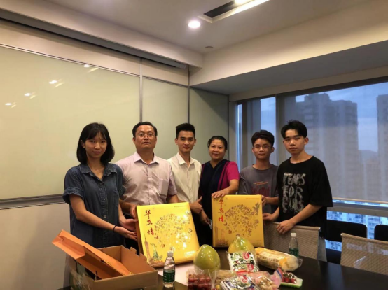 2021年9月16日下午,在中秋佳节来临之际,艺术与传媒学院党总支书记负责人、副院长孟允煌带领学院高玲老师和校企处陈敏老师,带着月饼和水果,来到广州市靓家居装饰材料有限公司,看望在这里实习的我院2019级环境艺术专业4名同学。同时,还与该公司人力资源中心总经理刘明星进行了洽谈。