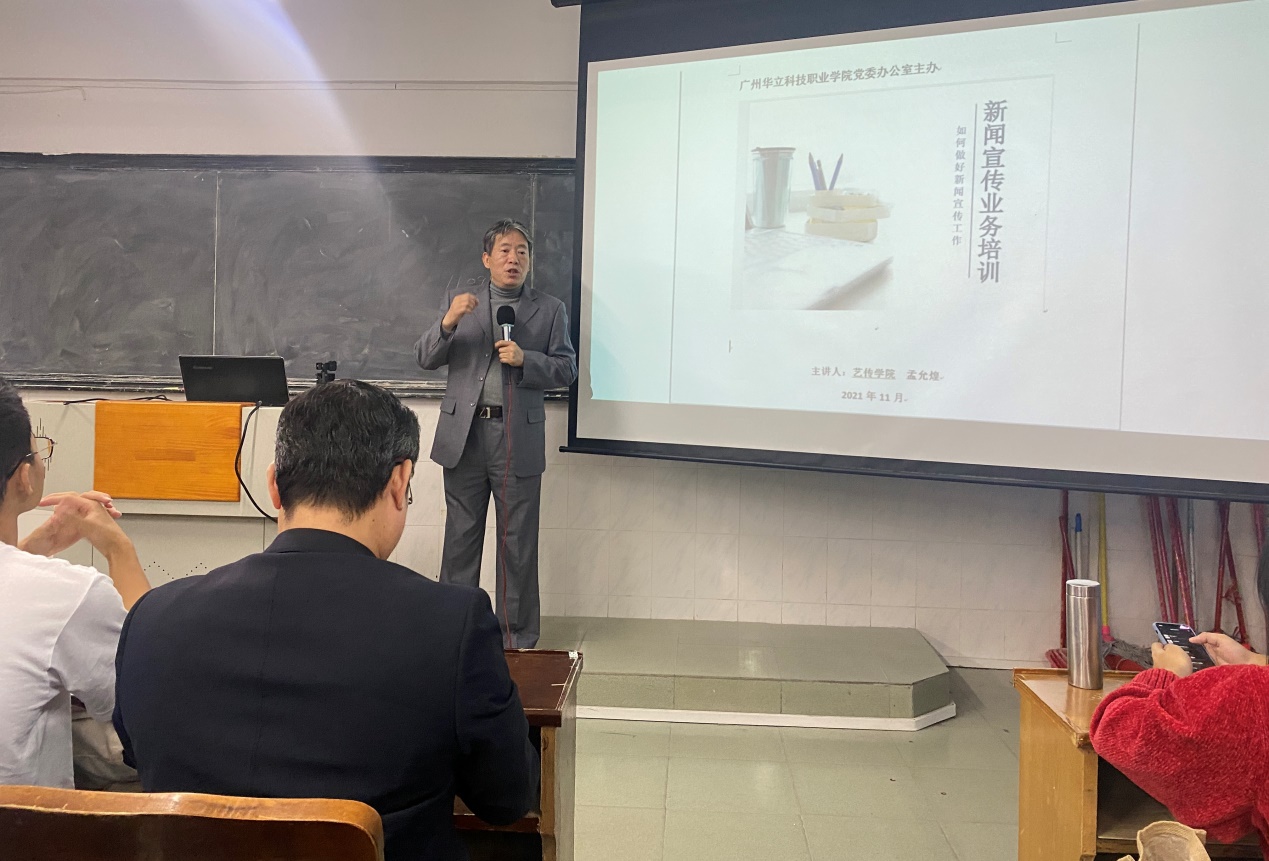 为进一步提高我校各部门的网站建设水平,打造学校品牌,提升学校的知名度及综合竞争力,2021年11月9日晚,我校党委办公室在西1-309多媒体课室举行新闻宣传业务培训。