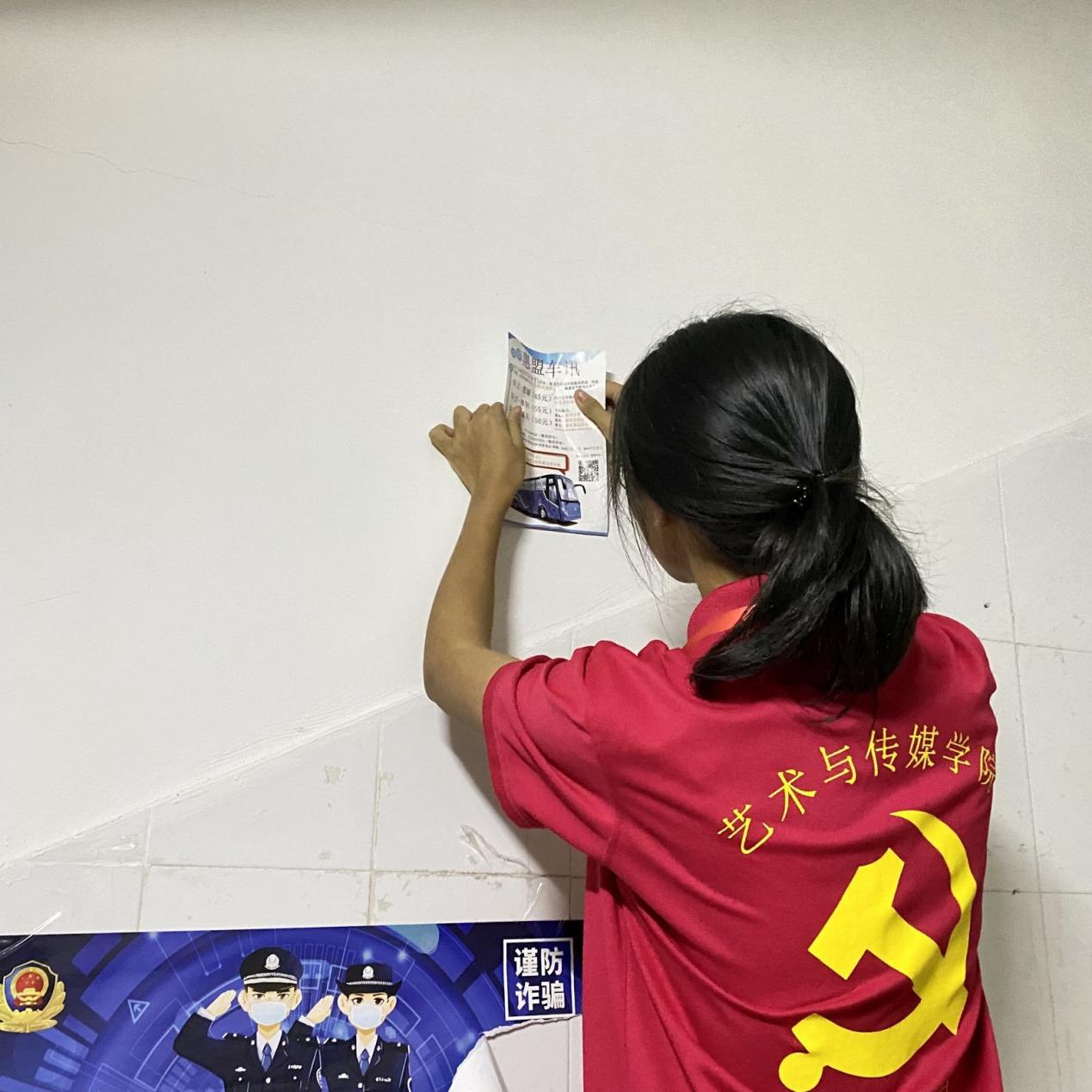 为营造更为舒适温馨的学习生活环境, 2021年11月23日下午,艺术与传媒学院党建小组开展清理宿舍楼道小广告活动。