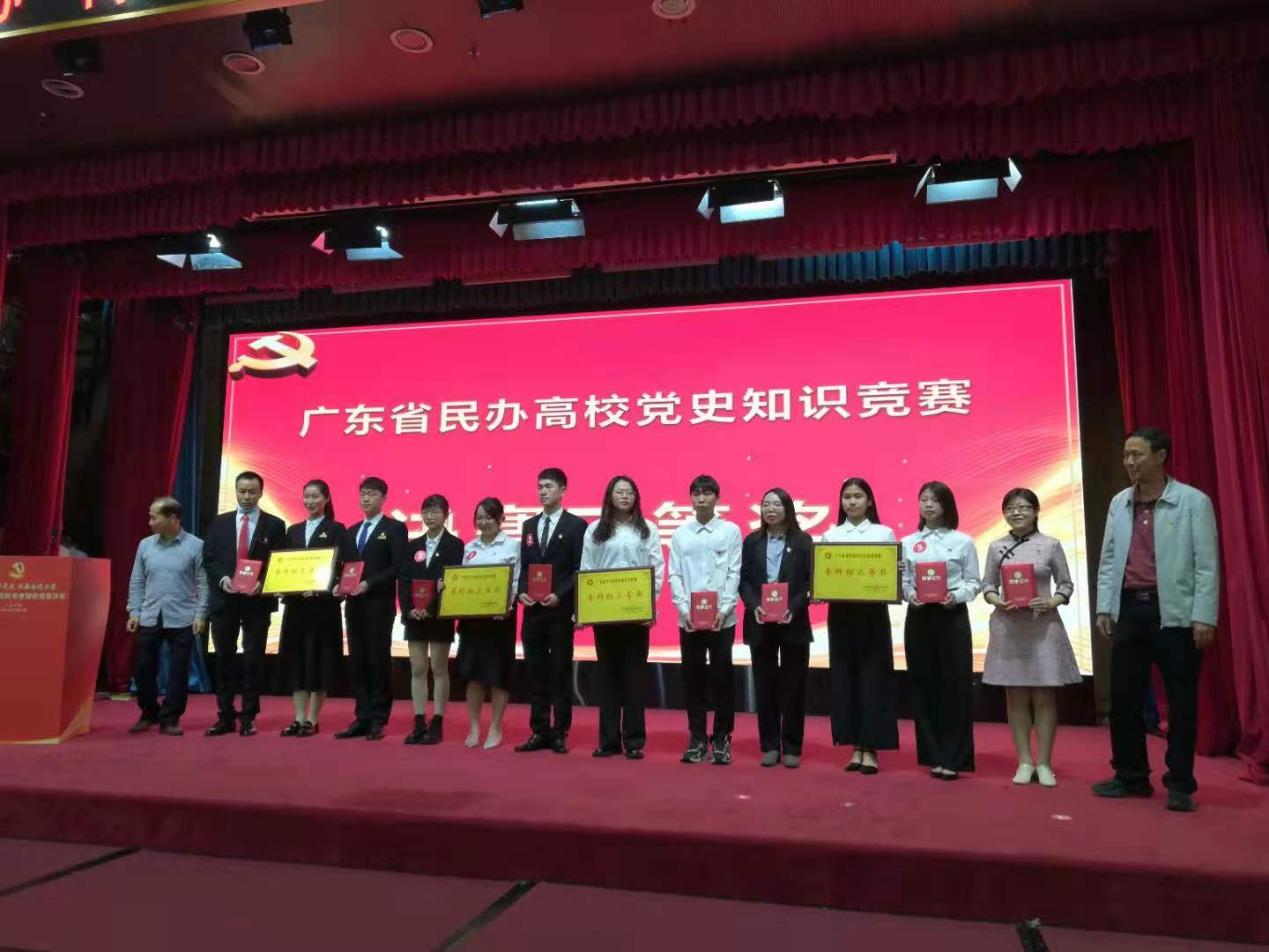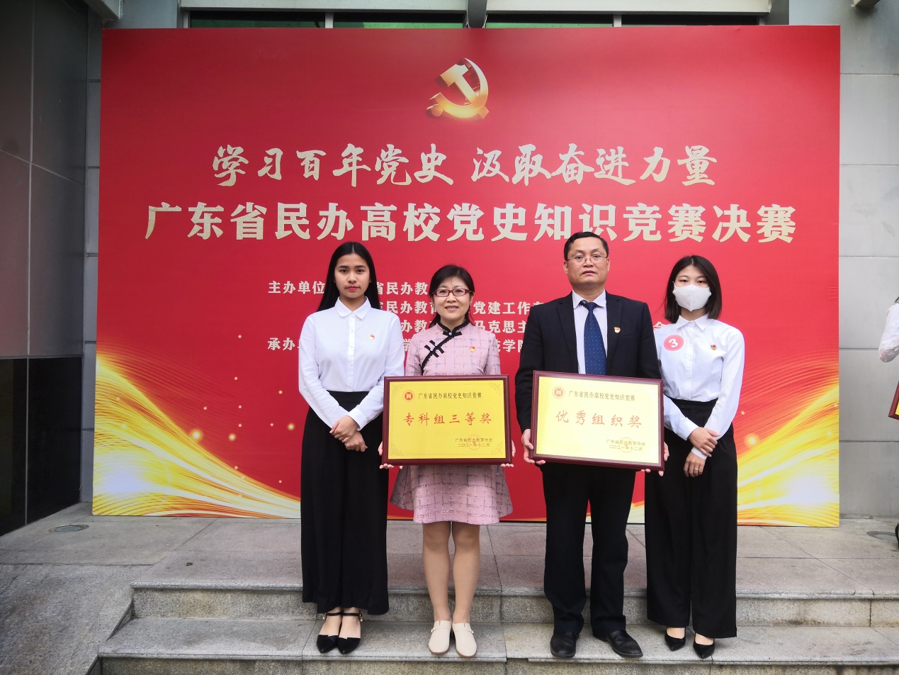 2021年12月12日,为期一个多月的广东省民办高校党史知识竞赛在广州举行决赛。我校代表队在激烈的角逐中表现出色,喜获专科组三等奖,同时还获该项赛事的优秀组织奖。我校艺术与传媒学院党总支书记孟允煌代表学校党委领取了优秀组织奖牌匾。