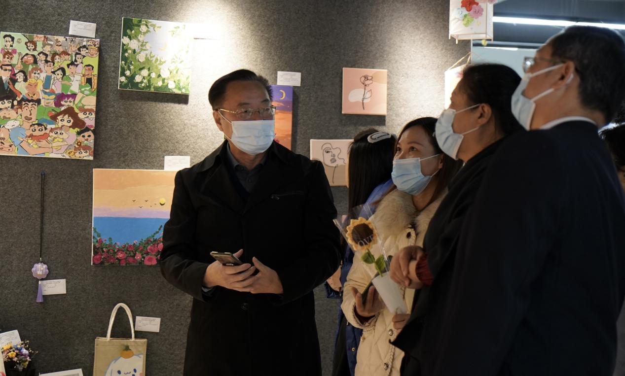 李于昆院长在讲话中指出,本次展览体现了师生共同参与的教学成果,是一个创新展,更是一种创新的教学模式,即将课堂的学习成果转变为手工作品进行展览,创新性十足。他认为,本次展览具有三大特色:一是内容丰富,从建党100周年的主题到现代艺术的各个方面都有所涉猎;二是形式多样,从平面到立体,从手工工艺到综合设计都有展现;三是材料环保,利用一些废弃物品,比如报纸、易拉罐等进行二次创造,体现了较强的环保生态意识。