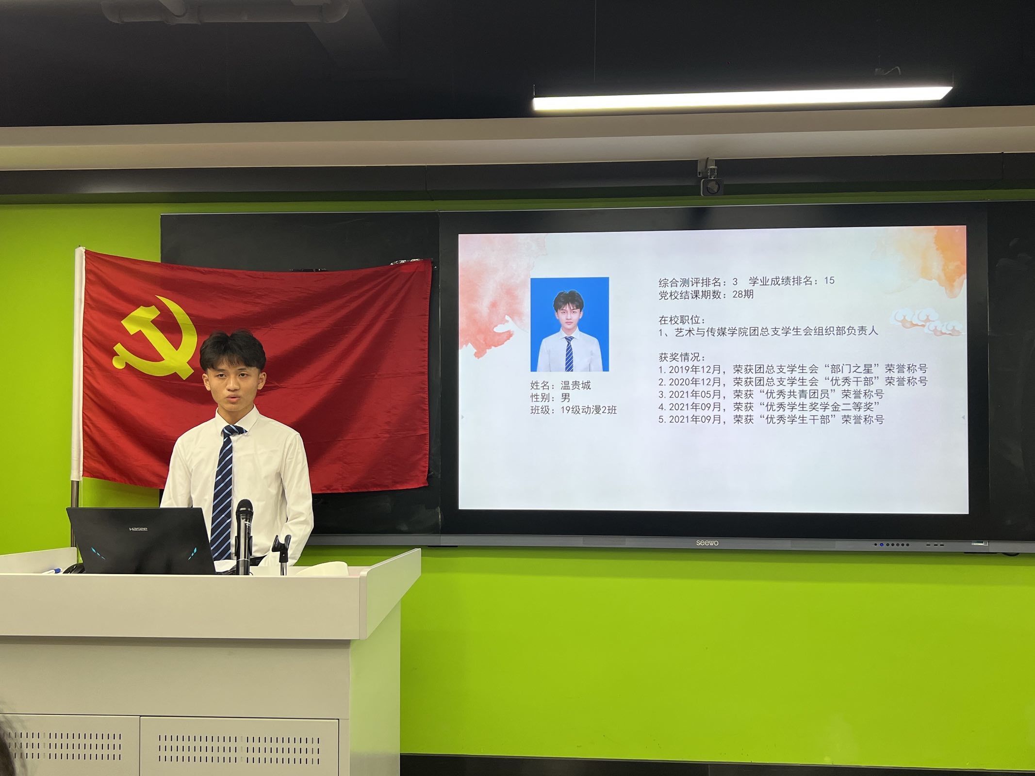 为进一步完善党支部的组织建设,增强生机与活力,壮大党员队伍,2021年12月24日下午,艺术与传媒学院党总支第二党支部于西三205召开新一期发展对象转预备党员通表大会。参加本次会议的有艺传学院党总支第二党支部书记宋依谜、纪检委员刘嘉怡老师及郭晓丽辅导员、学生党员、20位发展对象以及党建小组成员。