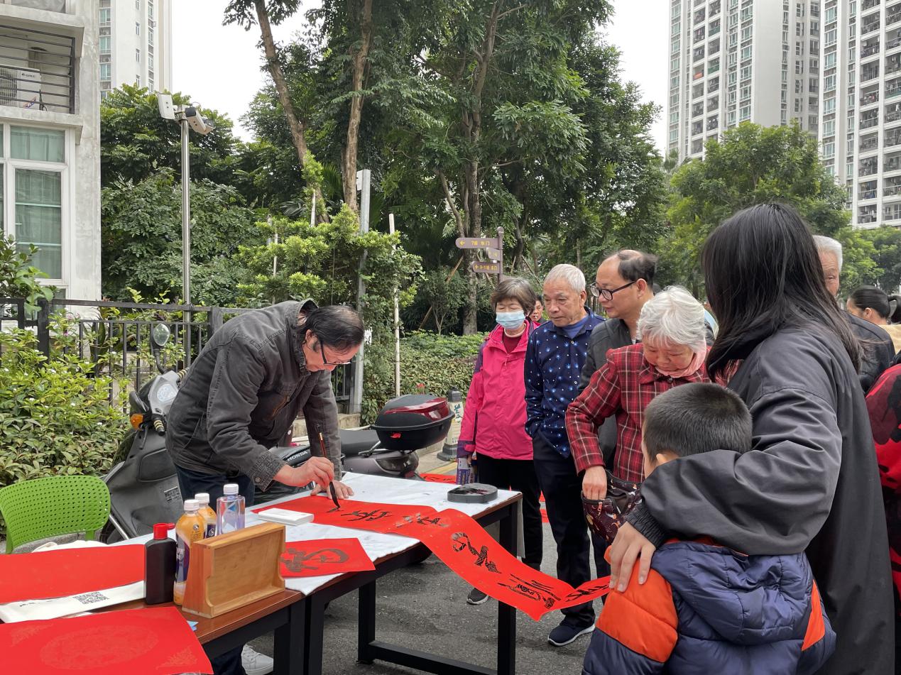 在今年新春佳节即将来临之际,为丰富社区文化生活,弘扬中华优秀传统文化,2022年1月15日,我校艺术与传媒学院教师党员邓常宁副教授在增城区增江街凤塔社区,开展“迎新春 写春联 送祝福”活动,作为我院党总支开展“我为群众办实事”的一项特色活动。