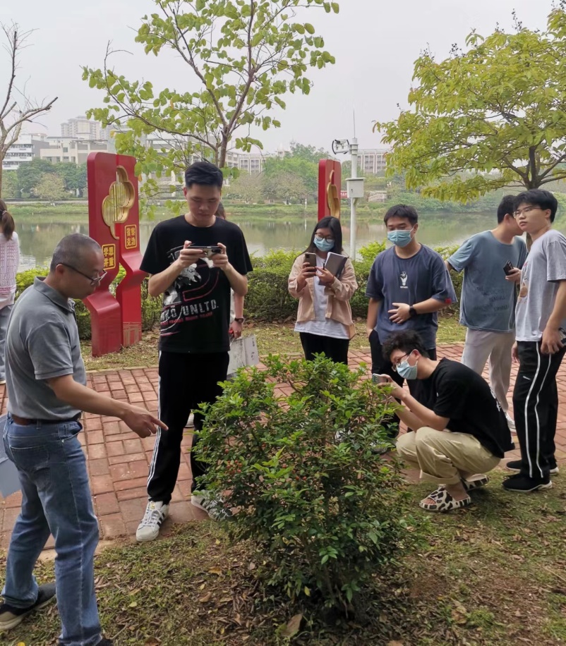 2022年4月21日,阳光明媚。艺术与传媒学院20级环艺专业学生在郑志强老师的带领下,进行了校园内植物考察实践活动。