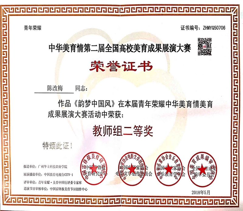 2018年陈改梅老师获第二届“国青杯”全国高校艺术与设计作品展评二等奖