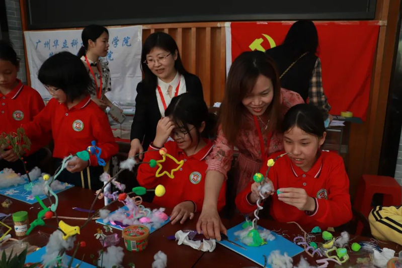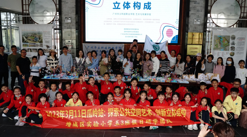 为了共同实现“品行雅、学习优、身心健、才艺佳、实践强”的“五拾”好少年的育人目标,有效地培养学生优良的思想道德品质,引领学生全面发展,助力小学教育减负提质增效,同时助力乡村文旅发展。3月11日下午,广州华立科技职业学院艺术与传媒学院与瓜岭村、广州吾乡美地乡村旅游文化发展有限公司联合开展以“创新立体构成,探索公共空间艺术”为主题的美育实践活动,于瓜岭村旅游服务中心举行。本次活动主要面对瓜岭村孩子、游客、增城区实验小学五(3)班学生及外联组家委孩子开设,参与人数近百人。