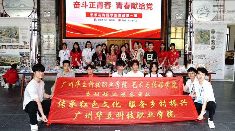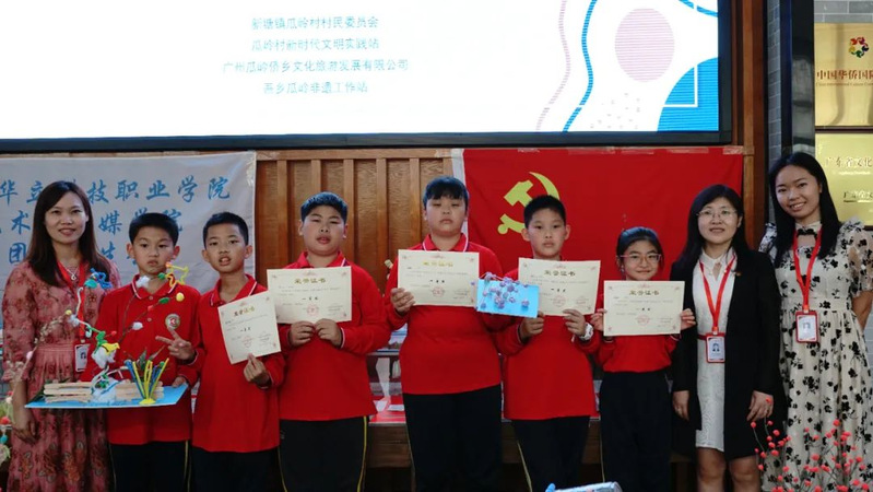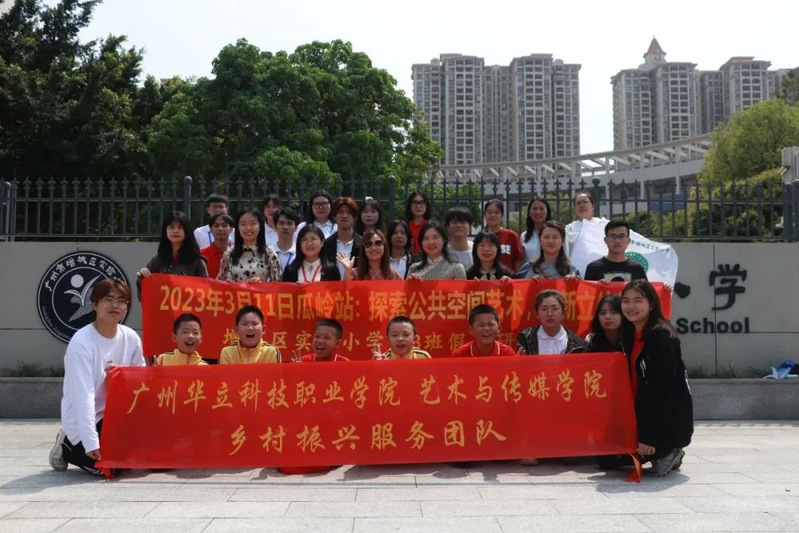 广州华立科技职业学院艺术与传媒学院乡村振兴团队在试验小学与研学代表留念