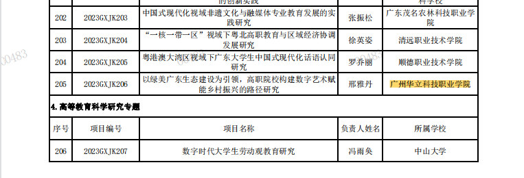 本次教育科学规划课题(高等教育专项)项目成功立项,体现了广东省教育科学规划领导小组办公室对我校科研工作的肯定和认可,也体现了学校对科研工作的重视和扶持,学校也将继续鼓励和支持我校教师申报各级各类科研项目,不断扩展项目申报领域,提高我校教师科研项目申报水平。