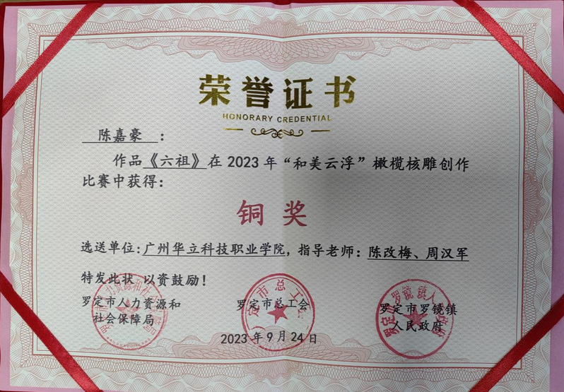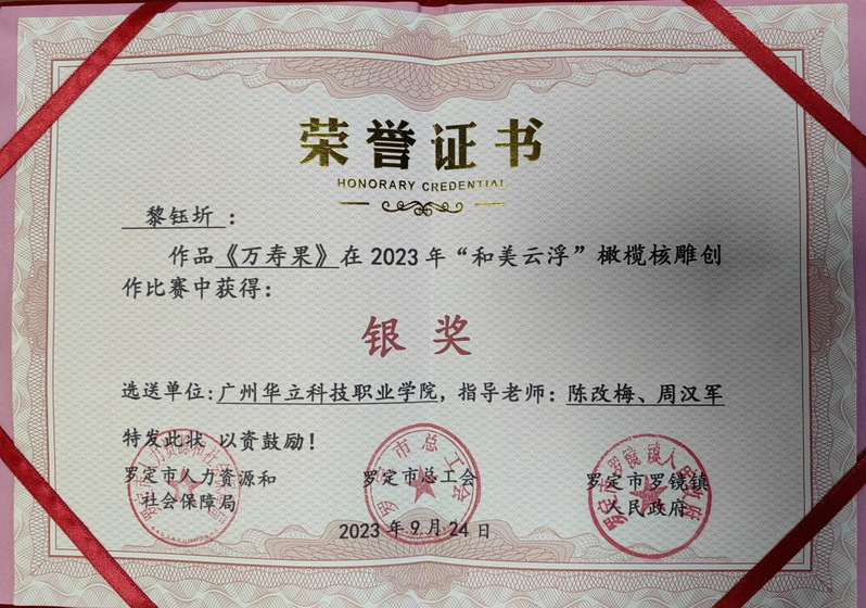 在专业艺术大师和工艺美术大师等专家高要求高标准的评审下,我院师生在高手如云的选手中喜获佳绩,其中我院22级学生黎钰圻获“银奖”、21级学生陈嘉豪获“铜奖”、马英超老师获优秀奖,王月老师获优秀奖。