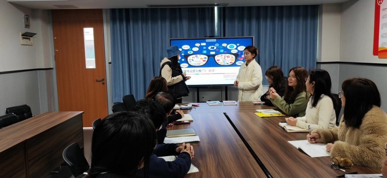 本次磨课活动先由李昀春、程海悦老师就“新媒体运营与推广”课程,解说了课程体系、知识重点、新媒体发展态势、新媒体的现实实践,及如何选取新案例丰富课程内容等问题,展示了初步完成的PPT课件,然后各位老师纷纷根据自己的理解,提出进一步完善课件的建议,李昀春、程海悦老师针对老师的建议,分别进行了解答。