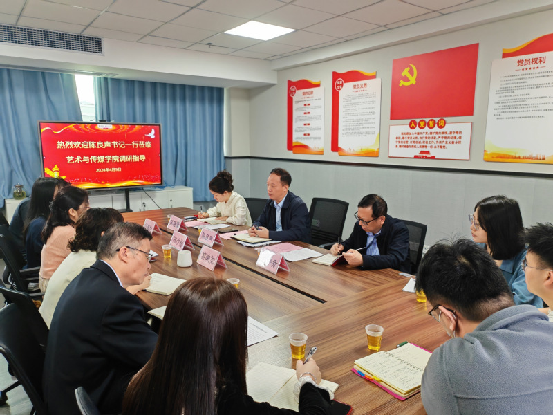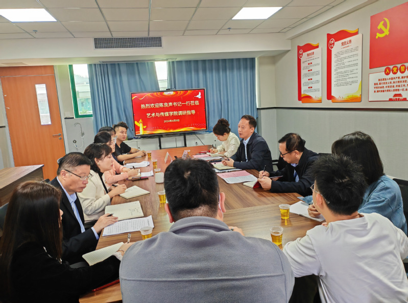 为深入推进新时代党建示范创建和质量创优工作,进一步提升基层党建工作质量和水平,促进学校党建工作提质增效。4月9日上午,学校党委书记陈良声、党办主任刘宇赤、组织部科长陈晓薇一行莅临艺传学院,深入开展党建“双创”工作专题调研,了解培育创建进展、遇到的困难、存在的问题及下一步工作思路,并针对调研中发现的党建“双创”培育建设重点难点问题,现场进行把脉问诊,精准施方,实施精准化指导、个性化服务。