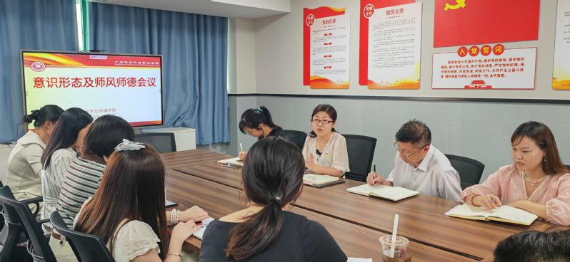 4月29日下午艺术与传媒学院举行了一场关于意识形态及师德师风集体学习,此次会议旨在加强学院师生对意识形态工作重要性的认识,提升教师师德师风综合水平,进一步推动学院教育教学工作的严谨、规范、积极、向上发展。会议由党总支书记陈改梅主持,全院老师参会。