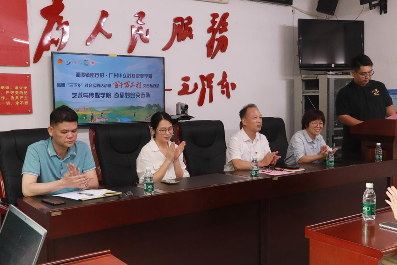 为贯彻落实广东青年大学生“百千万工程”突击队行动,进一步明确服务目标和工作重点,推动“百千万工程”工作走深走实。7月15日上午,学校党委书记陈良声、党委副书记副校长王洪艳等一行赴派潭镇密石村调研指导大学生暑期社会实践工作,为正在开展暑期社会实践活动的我院“百千万工程”奇思妙绘突击队师生们送上解暑慰问品,并在密石村村委会议室开展“百千万工程”交流座谈会。学校党委组织部组织科副科长陈晓微、团委副书记林静珊、计算机信息工程学生党总支专职副书记朱志豪陪同走访。派潭镇党政综合办公室主任姚利利、派潭镇密石村副村长黄艺华、以及“百千万工程”奇思妙绘突击队全体师生出席本次会议。