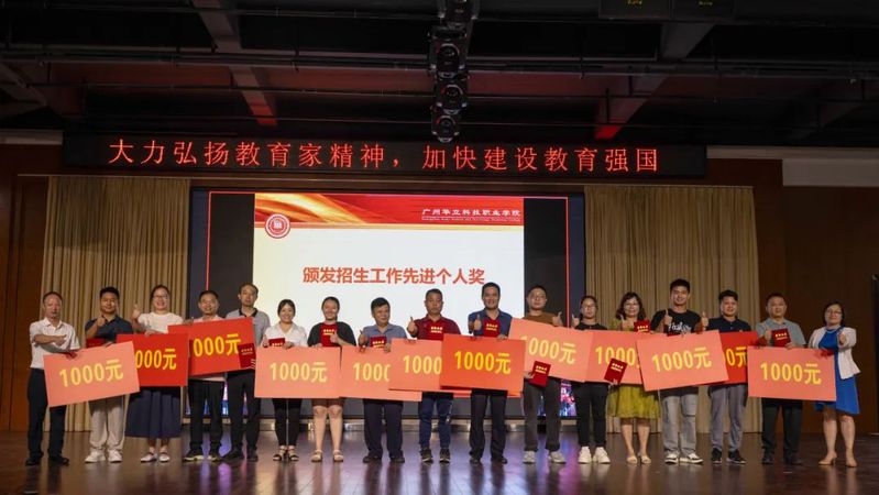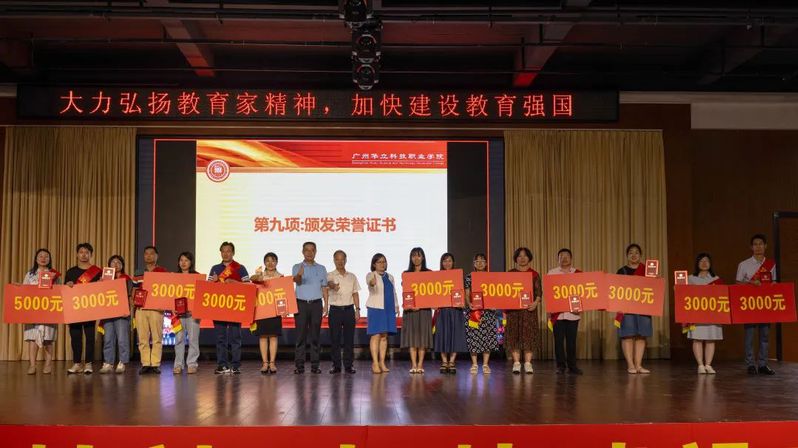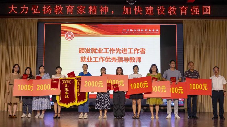 为激发广大教师向身边榜样学习、向先进典型看齐,大会隆重表彰了在教学科研、学生工作、招生就业等方面作出突出贡献的先进集体和个人,共发放奖金120万元!首先是学院的荣誉:我学院荣获“2022-2023学年就业工作先进集体”!接下来是个人荣誉:其中我院陈改梅、邢雅丹、刘嘉怡、黎映如、郑梓杰、唐青、郑黎明、陈舒薇、姜兵、李昀春10名老师获此殊荣。其中陈改梅、陈舒薇、刘嘉怡、邢雅丹老师荣获“2023-2024学年度华立园人才强校工程优秀教师 ”称号;黎映如老师荣获“2024年校级教学名师”称号;邢雅丹老师荣获校级教育教学成果奖;陈改梅、邢雅丹、郑黎明老师荣获校级科研先进工作者称号;郑梓杰、唐青老师荣获“优秀辅导员”称号;黎映如老师荣获“2022-2023学年就业工作先进工作者”称号;陈舒薇、李昀春、姜兵老师荣获“2022-2023学年就业工作优秀指导教师”称号;黎映如老师荣获招生工作先进个人称号。