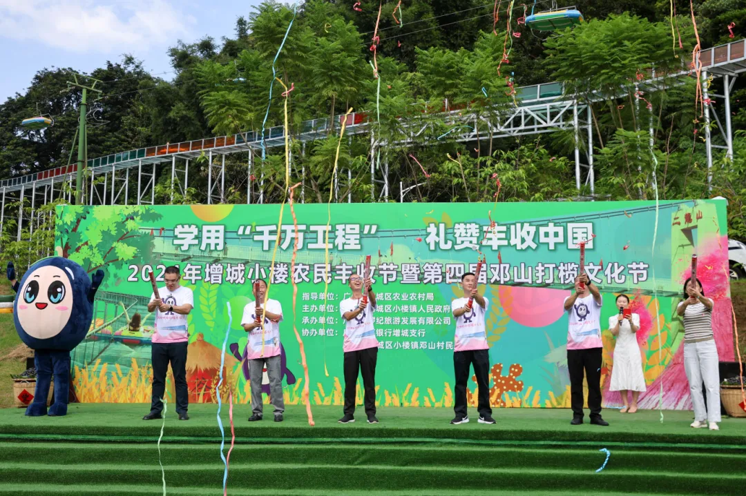 由广州市增城区农业农村局指导,小楼镇人民政府主办,以“学用‘百千万工程’ 礼赞丰收中国”为主题的2024年增城小楼农民丰收节暨第四届邓山打榄文化节10月1日在小楼镇星椤纪大森林(广州二龙山花园)举行。