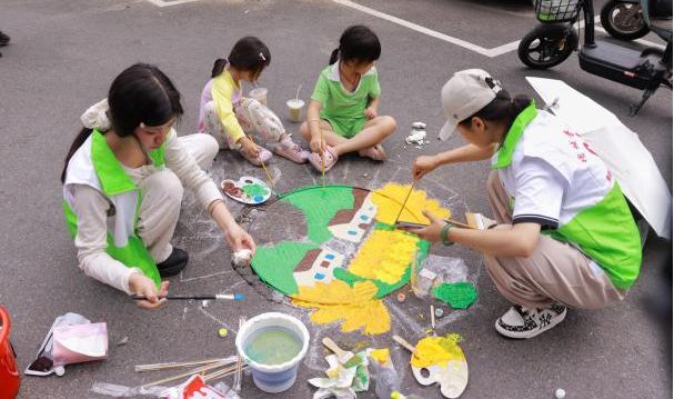 在活动现场,突击队员们身着统一服装,精神抖擞。他们充分发挥自身专业优势,用画笔描绘出绿美广东的壮丽景色,以艺术的形式传递环保理念。突击队员携带专业绘画工具和环保颜料,在社区工作人员的引导下,以社区沙井盖作为创作平台,围绕“绿美广东”“多色社区”“IP形象”等主题,结合桃源里社区特色,精心设计了多款图案,旨在通过艺术的形式,向社区居民传递多彩生活、美丽社区的理念,提高大家对社区的归属感与认同感,也为社区带来了一抹亮丽的色彩。