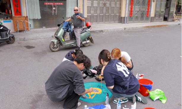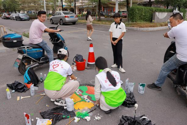 近日,为积极响应广东省“百县千镇万村高质量发展工程”,华立职院艺术与传媒学院组建了一支以艺传师生为主体的“百千万工程”突击队,前往华立职院“百千万工程”大学生社会实践基地派潭镇桃源里社区,开展了一场别开生面的井盖艺术设计与绘制活动,助力派潭镇桃源里社区容貌品质社区培育提升项目,为绘就绿美广东新画卷贡献青春力量。此次活动以“青年志愿绽光彩,绿美广东新画卷”为主题,旨在通过艺术的力量,为社区营造多元的文化氛围,进而提升居民的生活幸福感,同时展现青年志愿者的社会责任感、专业素养与创新精神。