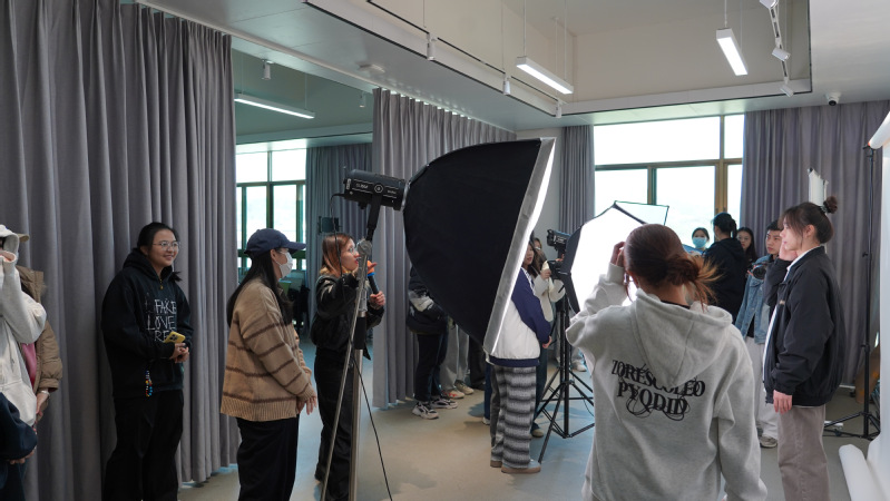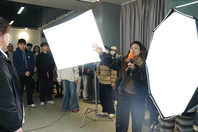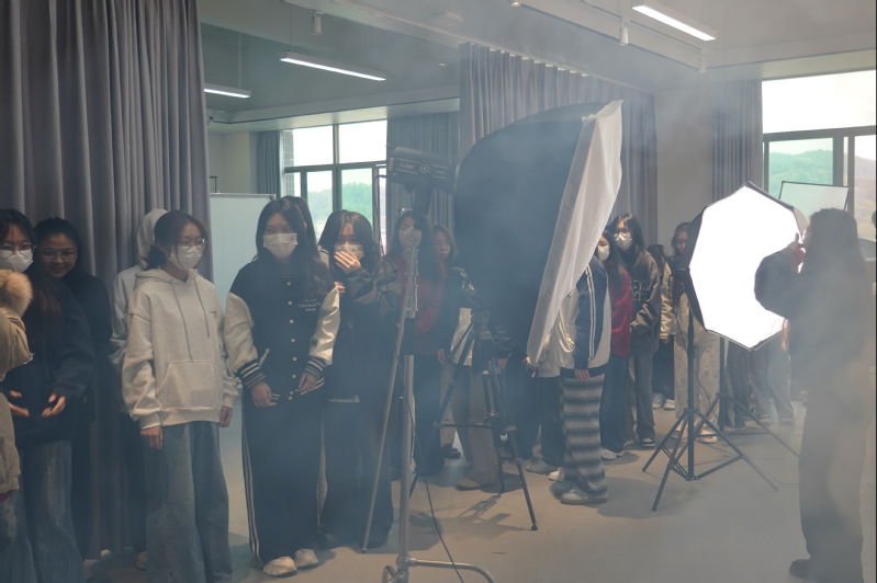 模拟场景一:电线短路演练;摄影棚内正在进行摄影教学,使用的设备电线比较多,某学生不小心踢到了地上的设备电线,设备发生短路了,任课老师立即关闭实验室总电源开关,指挥学生保持冷静,有序撤离实验室,并立刻通知学校安全管理人员处理等。整个疏散过程有条不紊,仅用了短短几分钟便全部完成,体现了师生们对演练流程的熟悉和良好的应急反应能力。