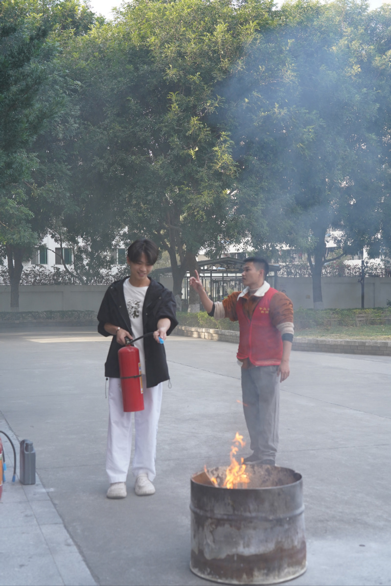 大家如何正确使用灭火器,并组织师生进行灭火器灭火实战操作。
