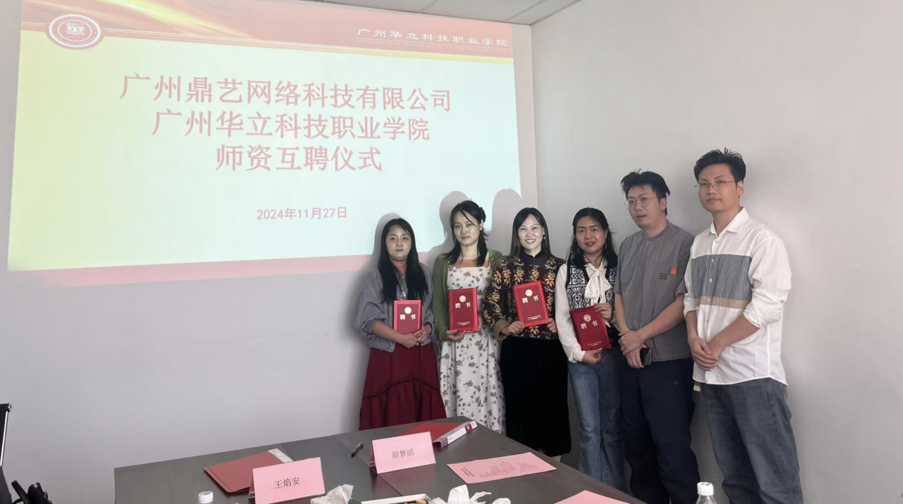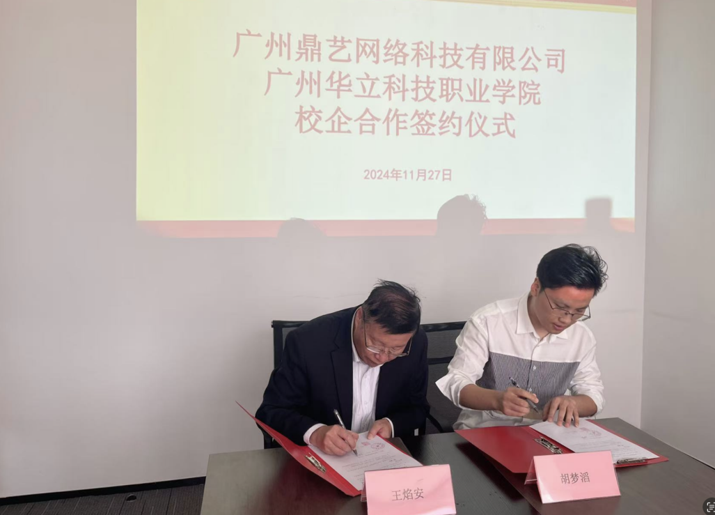 2024年11月27日,广州华立科技职业学院与广州鼎艺网络科技有限公司在校企合作领域迈出了坚实的一步,双方正式签署了战略合作协议。出席此次签约仪式的有广州鼎艺网络科技有限公司CEO胡梦滔、动画总监蒋旭亮、人事经理杨敏及艺传学院副院长王焰安、教科研主任邢雅丹、动漫专业老师姜兵、教师谭妮、教师李子。此次合作旨在通过优势互补,共同推动游戏设计领域的人才培养和技术创新。