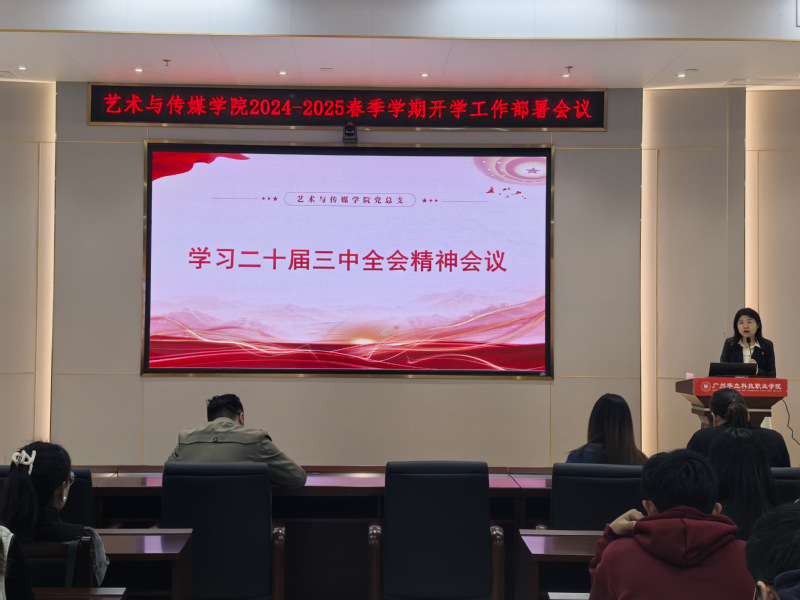 艺术与传媒学院党总支书记陈改梅带领大家学习了党的二十届三中全会精神,全面总结了过去一年学院党建工作成效,系统部署新一年重点任务。
