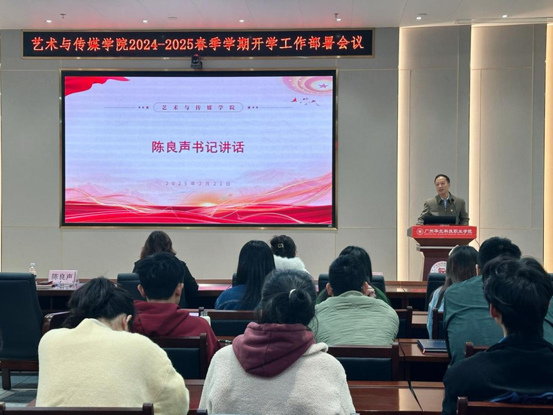 2025年2月21日上午在图书馆104,艺术与传媒学院党总支召开2025年春季学期全体党员大会,学校党委书记陈良声、常务副校长马俊、副校长陈显强、人事处处长钟文浩、组织部副部长陈晓薇受邀参加本次会议,会议由艺术与传媒学院党总支书记陈改梅主持。此次会议旨在明确新学期党建工作方向,聚焦巩固深化党建成果、谋划高质量发展路径,推动艺术与传媒学院党建工作再上新台阶。