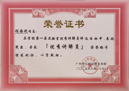 学院在组织过程中展现了高效的执行力和出色的组织能力。推荐的两位教师在评选中脱颖而出,其中黎逸童老师获得“金牌讲解员”称号,程海悦老师荣获“优秀讲解员”称号,此次获奖不仅是对个人能力的肯定,也是对学院教学质量和科研实力的认可。