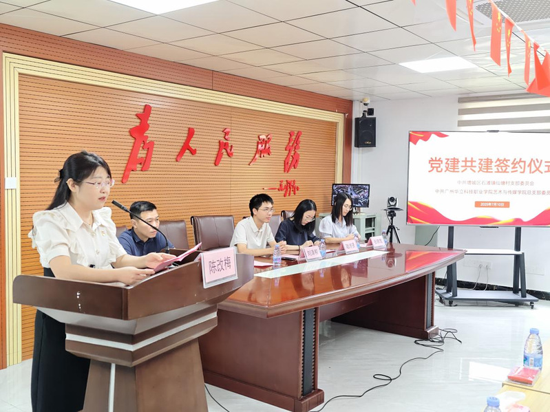 为深入贯彻习近平新时代中国特色社会主义思想,推动基层党建提质增效,2025年7月10日上午,广州华立科技职业学院艺术与传媒学院党总支与广州增城仙塘村党支部在仙塘村村委会议室举行党建共建结对仪式。石滩镇副镇长、仙塘村挂村领导刘泽帮,石滩镇残联主任、仙塘村挂村部门负责人黄少瑛,镇团委书记陆沛贤,仙塘村党支部书记张锦莺等仙塘村代表出席仪式,此次共建活动由艺传学院党总支陈改梅书记主持。