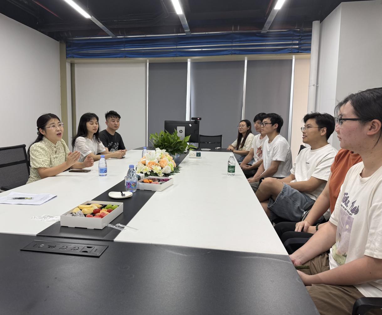 广州鼎艺网络科技有限公司 CEO 胡梦滔与人事部经理杨敏对学院一行的到来表示热烈的欢迎,并与我院开展座谈交流,陈改梅书记与学生们亲切交流,细致询问了他们的工作内容、生活情况以及实习收获,提醒学生在外提高安全意识和防诈警惕,并鼓励大家积极适应企业环境,将校内所学有效运用于实践,不断提升专业能力和创新意识。