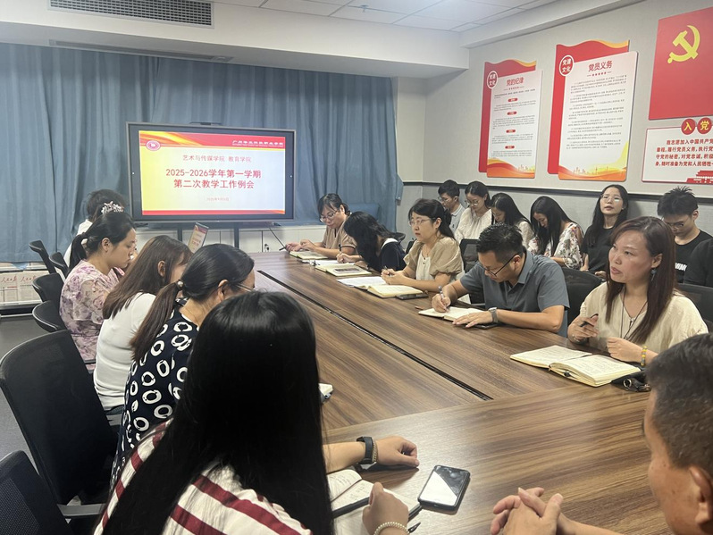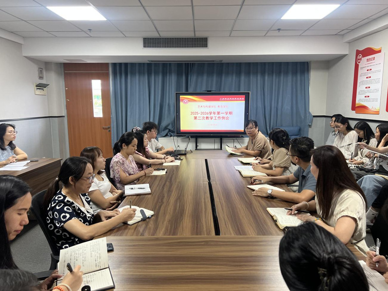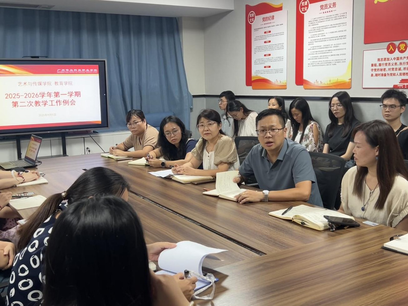 9月5日中午,艺术与传媒学院在学院会议室成功召开全体任课教师教学工作例会。此次会议聚焦教风建设,旨在全面提升教学质量与人才培养水平,为学院高质量发展奠定坚实基础。学院院长朱君、党总支书记陈改梅及全体任课教师共同出席此次会议。