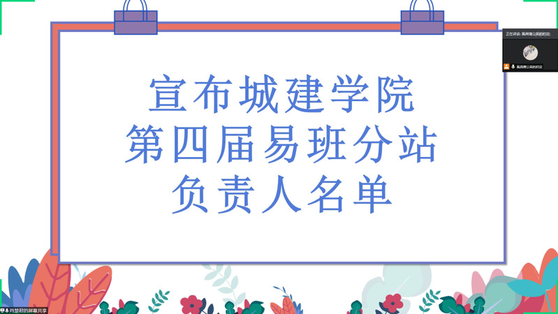 紧接着,分站长张颖师姐宣布第四届易班分站负责人名单。