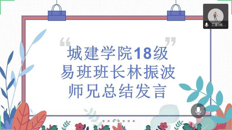 首先,由城建学院18级易班班长代表林振波师兄进行年度工作总结,他说担任两年的易班班长职务,从易班平台学到很多便捷学识,例如班级有投票和通知都可以在易班平台发动,还可以查询成绩等,并对这年度工作进行总结,同时提出几点工作上的经验和建议给19级的师弟师妹们学习。