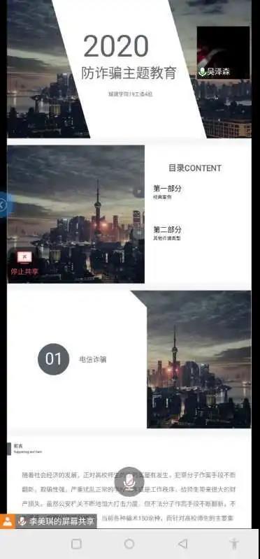 本次活动以组织同学们线上参加腾讯会议观看视频和ppt讲解的方式,全方面的解说了如何遵守交通规则与如何防范不法人士的诈骗手段,对同学们进行了细致的安全知识教育,引导同学们从思想上重视,行动上做起,并用各种真实的案例来告诫、警示同学们,希望同学们无论在网络还是在现实生活都要主义自身财产和人身安全。