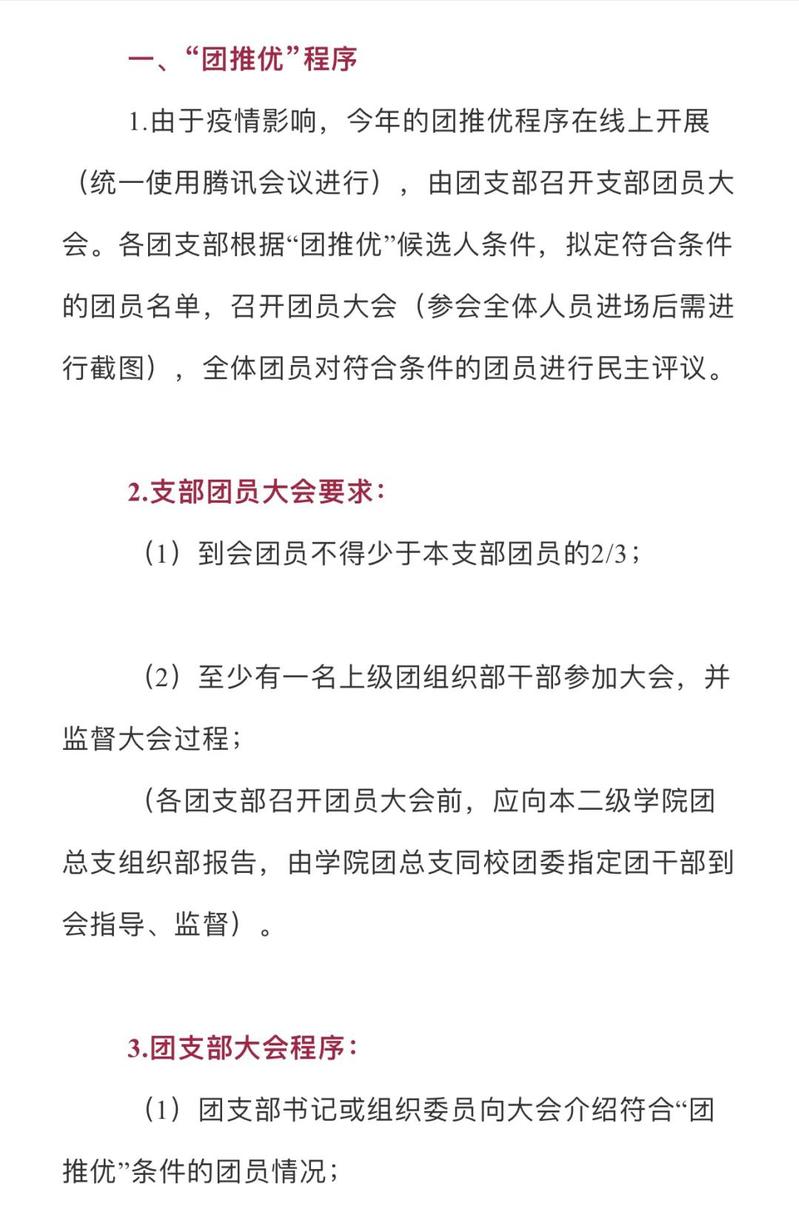 为贯彻中央关于新冠病毒感染的肺炎疫情防控的总体要求,全校师生实行停课不停学政策。线上发展中国共产主义青年团是中国共产党的助手和后备军,推荐优秀团员作为党的培养对象工作(以下简称“团推优”),是党赋予共青团组织的一项光荣任务,也是充分发挥共青团作为党的助手和后备军作用的重要措施。