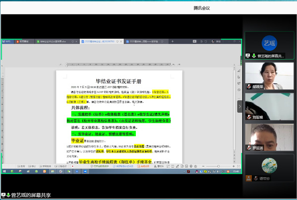 2020年7月3日,城建学院通过腾讯会议召开2017级毕业证发放工作培训会议,常务副院长邹筱萍及全体工作人员参加了会议。会议由城建学院办公室主任刘军根老师主持。