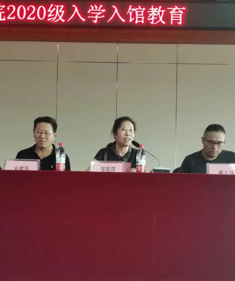 会议第二项:由主持人肖楚君为2020级新生介绍了在座的参会领导及老师。