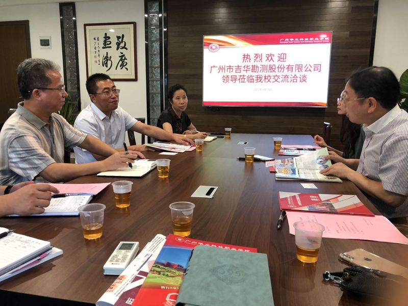 2020年9月25日下午,广州市吉华勘测股份有限公司彭炎华董事长一行3人前来学校城建学院进行考察交流,共同探讨校企合作新模式。学校领导高尧来副院长,教务处何志宏处长,校企处钟文浩处长,城建学院邹筱萍副院长、戴玉林副院长、刘燕副主任参加了交流活动,会议在学校行政楼305举行。