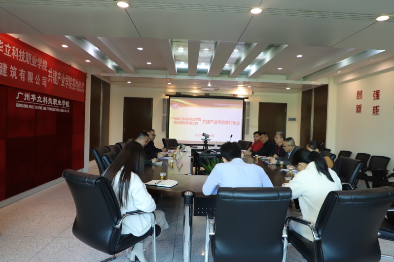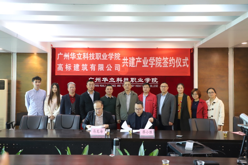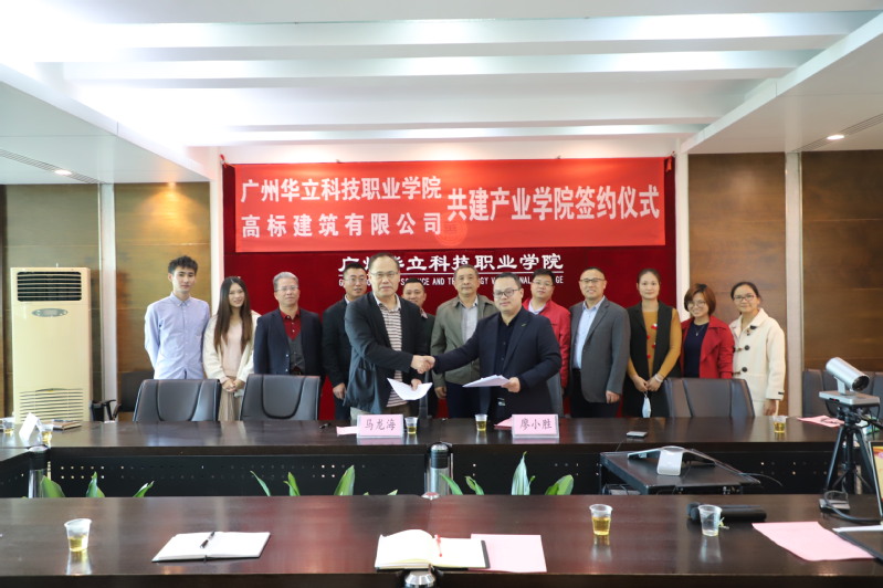 2020年11月30日,我校与高标建筑有限公司在行政楼305会议室举行共建现代产业学院签约仪式,华立职院执行校长马龙海、高标建筑有限公司法人代表廖小胜分别代表双方在协议书上签字。出席会议的还有高标建筑有限公司办公室主任吴挺才,我校校长刘庄、副校长高尧来、教务处副处长何志宏、校企合作与就业管理处负责人钟文浩、城建学院副院长戴玉林及相关负责人。