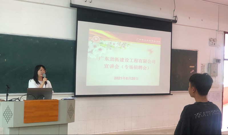 首先,城建学院校外教学刘燕副主任欢迎广东劲拓建设工程有限公司到校宣讲,希望同学们可以抓住机会,放平心态,主动出击,现场取得面试成功。